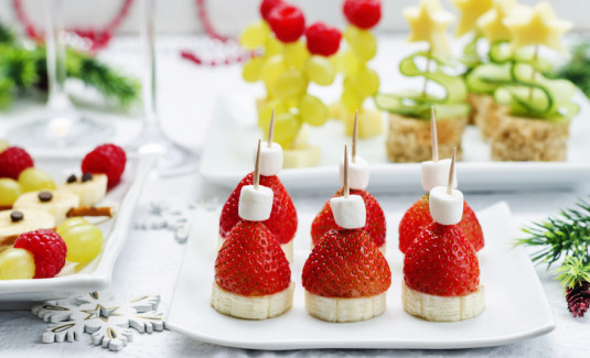 Si los pequeños están súper emocionados porque Santa llegará en la noche con regalos, auméntales la emoción con unas fresas que se asemejan al gorrito…